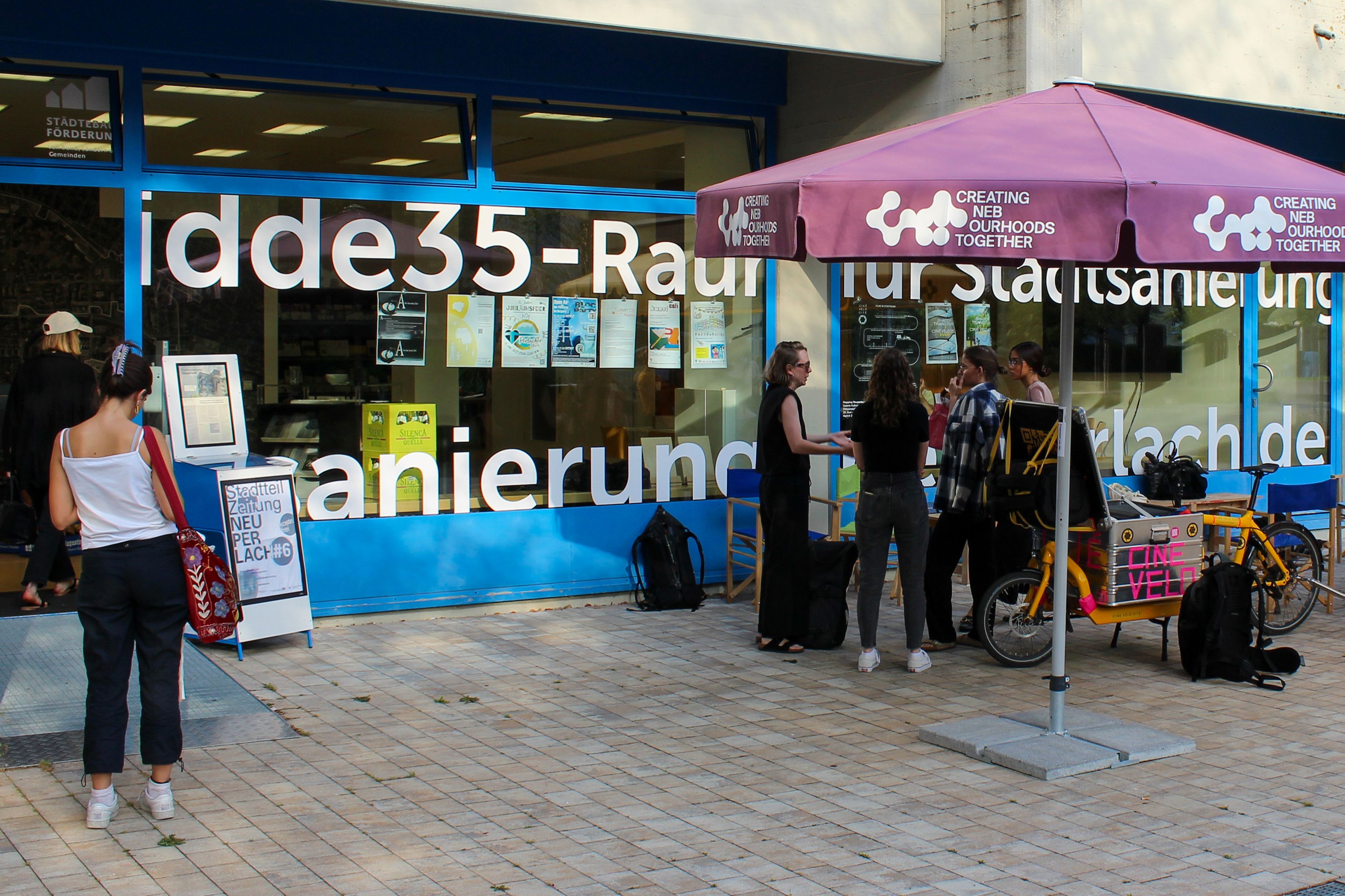 At the new location of the NEBourhood "RESI" Hub (under the southern Jakobusbrücke between Quidde...